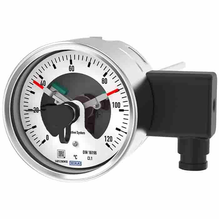 Bimetal thermometer with switch contacts